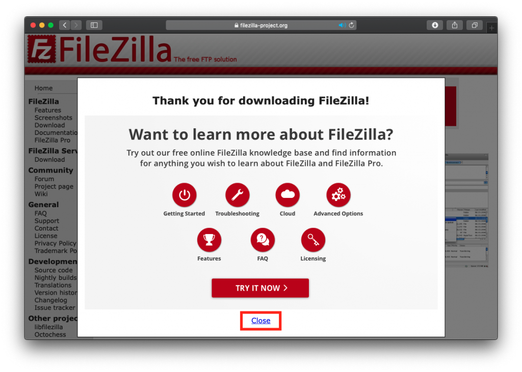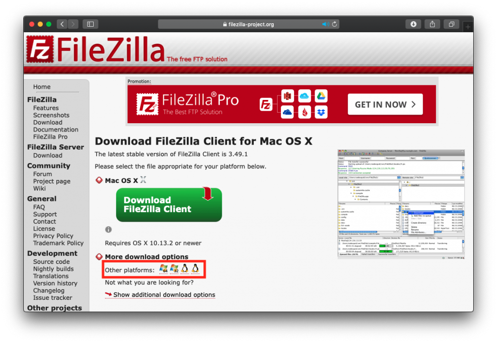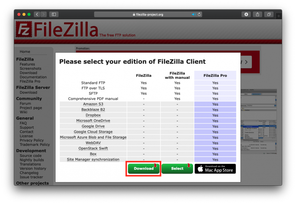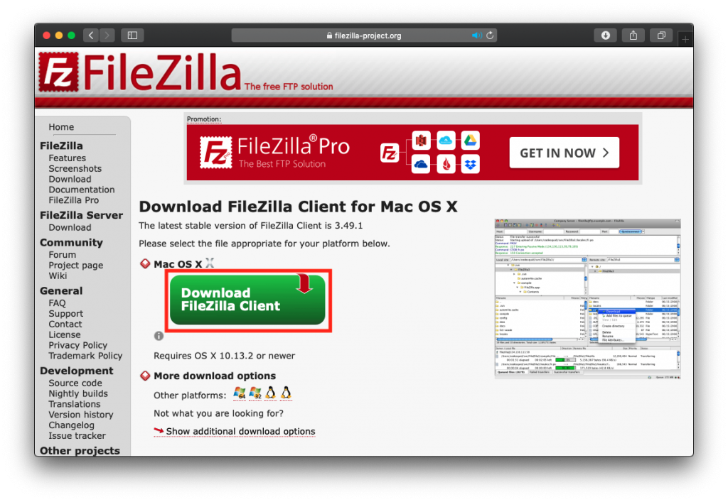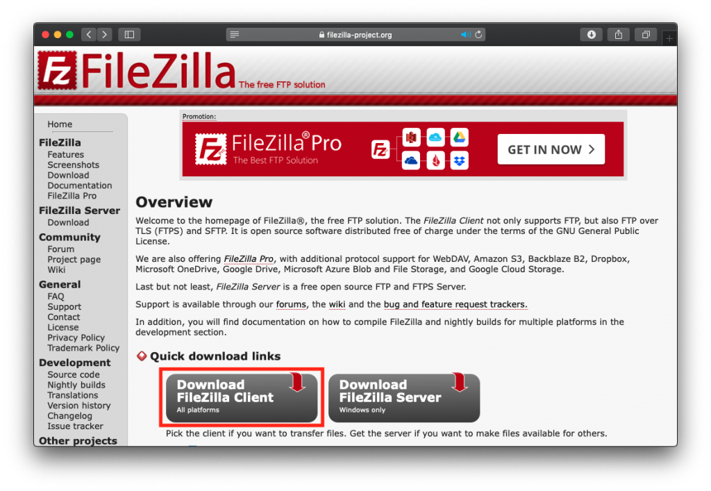 Macの場合は、そのまま「Download FileZilla Client」をクリックします